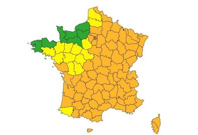 75 départements sont en vigilance orange canicule pour la journée de jeudi. Seule une portion nord-ouest du pays semble épargnée. Plusieurs départements du Centre-Est, de l’Est et des Pyrénées, ainsi que la Corse, sont placés en vigilance jaune pour des orages. « Des orages repartent sur les massifs du sud cet après-midi, et sont parfois forts sur les Alpes du Sud », avertit Météo France.