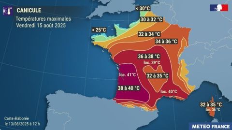« La chaleur est en légère atténuation dans le nord et l’est de la France, mais reste forte en général » ce jeudi 14 août 2025, selon les dernières prévisions de Météo France. Les températures fléchissent notamment sur le Centre-Est, mais restent à des niveaux caniculaires sur une grande partie du pays. Elles sont bien souvent comprises entre 35 et 38 °C l’après-midi dans le Sud-Ouest, localement un peu plus en Occitanie.