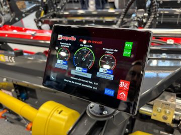 Le fabricant Italien Capello a exposé lors d’Agritechnica 2025, une nouvelle gamme de coupe à tapis dénommée Rubian. Elle se décline en trois modèles de différentes largeurs : le S25, de 7,60 m, le S30 de 9,14 m et le S35 de 10,67 m. Celles-ci sont entièrement flexibles et la course maximale de flexion est de 168 mm. Il est possible de verrouiller mécaniquement la coupe afin qu’elle reste soit rigide, soit flexible. Le réservoir hydraulique est intégré sur à la coupe. L’ajustement de la tension se fait automatiquement. La barre coupe s’accompagne d’un terminal de commande tactile. Ce dernier sert à faire varier la vitesse des vis de recentrage et des tapis, latéraux et centraux. Un kit pour récolter le colza est également disponible en option.