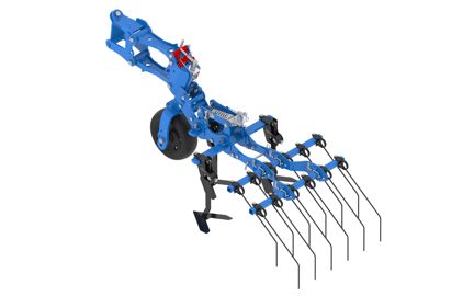 Le constructeur vendéen introduit la Klinea, sa nouvelle bineuse destinée notamment à travailler dans les céréales. Cette machine se démarque par son élément bineur. Il reçoit de une à trois dents et ces dernières possèdent un étançon rigide pour limiter la déviation du soc et donc augmenter la précision du binage. Une articulation couplée à une sécurité non-stop à ressort est présente entre le parallélogramme et le châssis des dents. Ce système permet également de régler l’inclinaison des socs. De série, ces éléments bineurs héritent d’une double rangée de herses peignes pour compléter le travail des dents.