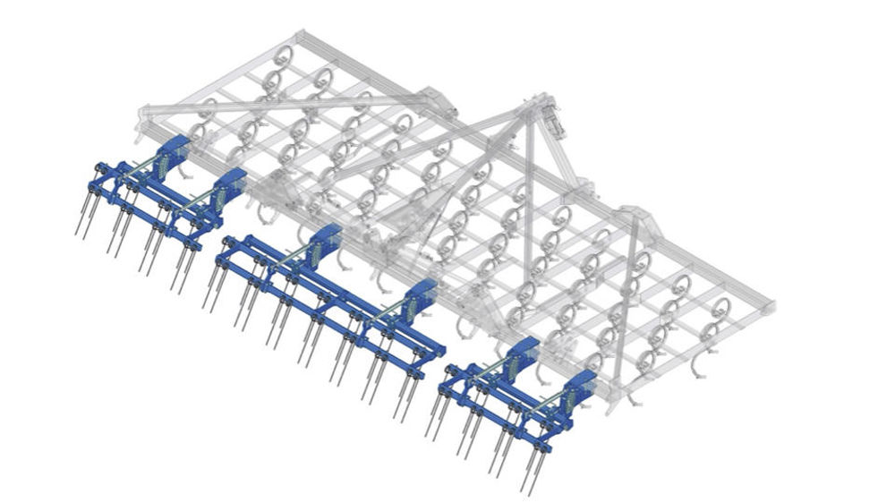 Carré améliore la polyvalence de son vibroculteur Pentasol. Ainsi, il est désormais possible de monter la herse peigne double, avec des dents d’un diamètre de 10 mm à l’arrière. Avec un nombre de peignes équivalent à la herse peigne simple rangée, la nouvelle herse peigne est disposée sur deux rangées. Celle-ci permet d’améliorer nettement le flux dans le but de réduire le risque de bourrage même en présence importante de résidus.