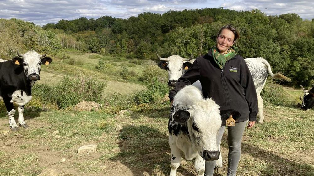 « Je ne trouvais pas d’exploitation financièrement accessible à reprendre dans l’est de la France. Des amis éleveurs salers du Cantal et de la Corrèze m’ont suggéré de venir m’installer près de chez eux. J’ai trouvé la ferme de mes rêves à Astaillac (Corrèze) dans la vallée de la Dordogne », explique Rosalie Zinck. 19 hectares de prairies, une étable entravée, une stabulation et une bergerie accueillent aujourd’hui La Ferme de Rosalie avec ses vaches et son taureau de race vosgienne… et une vache salers.