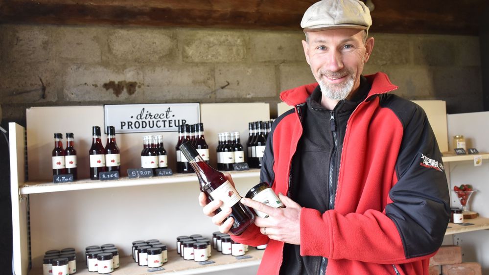 Une savoureuse odeur de confiture de fraise, une large gamme de produits sur les étagères… bienvenue au Verger de la Fontaine. « Pour se démarquer, il faut des goûts moins courants », lance Frédéric Ozog, producteur de fruits, en regardant une bouteille de sirop de sureau et attrapant un pot de confiture de cynorhodon.