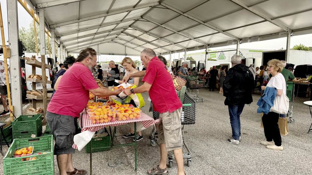 Trois fois par semaine, de 16h30 à 19h, ce marché de demi-gros à destination des particuliers réunit une trentaine de producteurs sous un chapiteau de 700 m². Comme Lionel Reynaud qui vend ses abricots, cerises, pêches, nectarines et raisins produits à Eyragues (EARL Les trois cyprès). « En quinze ans, je me suis lié d’amitié avec certains clients fidèles. Recevoir des SMS comme : “Nous nous sommes régalés de vos nectarines !” donne du sens à ce que nous produisons. »