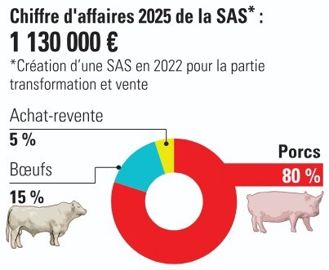 Hormis quelques porcs et vaches de réforme commercialisés chaque année « dans le système conventionnel », l’intégralité de la production est transformée et vendue en direct au magasin. Tous les morceaux, des plus nobles aux moins prisés, sont valorisés afin de limiter le gaspillage.