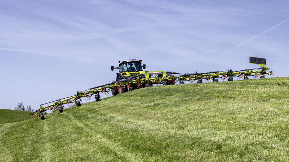 Jusqu’à présent, l’offre de faneuses de Claas couvrait une plage de largeur de travail de 4,5 à 13 mètres. Le constructeur allemand renouvelle sa faneuse de 13 m et en profite pour lui offrir une grande sœur de 15,10 m. Les faneuses Volto 1300 T et Volto 1500 T se distinguent par un nouveau concept de châssis et de cadre qui améliore le suivi du sol, en particulier en dévers. Le cadre central étroit intègre un support d’essieu en Y et une suspension à roues indépendantes.