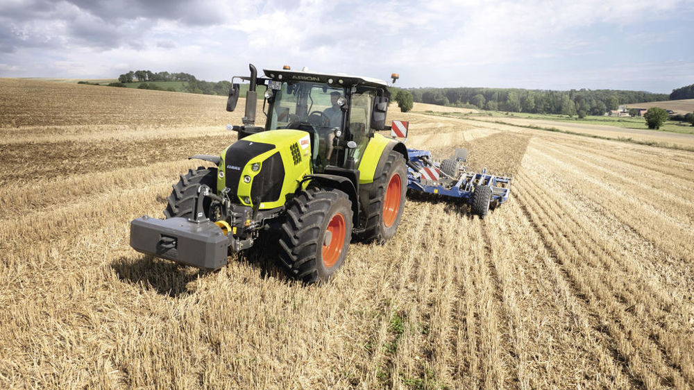 La seule transmission disponible est la Cmtic à variation continue fabriquée par Claas dans son usine de Paderborn (Allemagne). Outre une commutation automatique entre ses deux gammes de rapports, celle-ci offre une fonction « neutre actif » et permet d’atteindre une vitesse de 40 ou 50 km/h selon la version choisie. Parmi les fonctions proposées par cette transmission se trouve le mode chargeuse à pneus. Conçue pour le travail au chargeur frontal, cette solution utilise le logiciel de la transmission pour prévenir tout patinage des roues en poussée, notamment lors des travaux de chargement de terre ou de fumier par exemple. Cette fonctionnalité est rendue possible grâce à un système de surveillance utilisant des capteurs de couple et de régime. De plus, la gestion exacte de la vitesse en mode hydrostatique permet de travailler avec plus de précision, par exemple pour empiler des balles de paille. Lors des transports sur route, le frein de maintien en ligne automatique améliore la sécurité des attelages avec outils traînés, notamment dans les descentes, mais aussi en dévers. Le système Cemos, qui aide le chauffeur à optimiser ses réglages, est proposé en accès libre pendant les 400 premières heures puis nécessite une licence à vie.