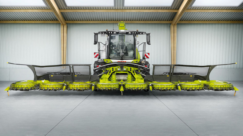 1 100 ch sur une ensileuse, c’est bien, 1 100 ch correctement occupés, c’est mieux ! Afin de valoriser toute la puissance de sa nouvelle ensileuse Jaguar série 1000, Claas a développé le bec à maïs Orbis 12000. Il affiche une largeur de travail de 12 mètres, ce qui correspond à 16 rangs de maïs à 75 cm.