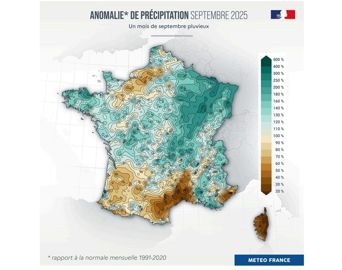 Septembre a aussi été particulièrement gris avec un déficit d’ensoleillement de 15 %. À noter que « l’humidité des sols est restée proche de la normale à l’échelle du pays tout au long du mois », souligne Météo-France.