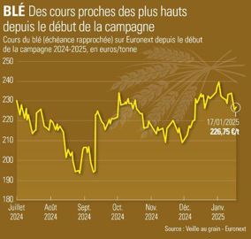De son côté, l’Australie effectue son retour sur le marché mondial avec une récolte satisfaisante estimée à 32 millions de tonnes, contre 26 millions de tonnes l’année dernière. Cela pourrait temporiser la tension des prix sur le rapproché. Le marché surveillera également la demande mondiale qui reste incertaine, notamment en Chine. Freinées par le ralentissement économique, les importations de l’empire du Milieu sont en effet inférieures de moitié à l’an dernier.