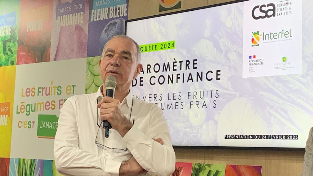 « La confiance envers les fruits et légumes frais est toujours là avec des résultats stables depuis 5 ans et à un très haut niveau », a constaté Daniel Sauvaitre, le président d’Interfel. Il participait ce 24 février 2025 à la présentation de la onzième édition du baromètre de confiance envers les fruits et légumes frais. « Mais ce qui nous a intéressé, ce sont les signaux faibles. L’objectif étant en effet pour nous d’augmenter la consommation des fruits et légumes frais, il est important pour guider nos stratégies de bien écouter les consommateurs et ce qui les préoccupe. »