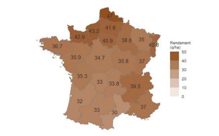 « Le gradient croissant des niveaux de rendement du sud vers le nord du pays se vérifie en 2025 », selon l’institut technique, qui relève de grandes variabilités entre parcelles et bassins de production. Il note par exemple un rendement moyen estimé à 32 q/ha en Aquitaine, tandis qu’il atteint 47 q/ha dans le Nord-Pas-de-Calais. « Des rendements de près de 60 q/ha sont même enregistrés dans les sols profonds des Hauts-de-France, de la Normandie mais aussi à d’autres endroits. »