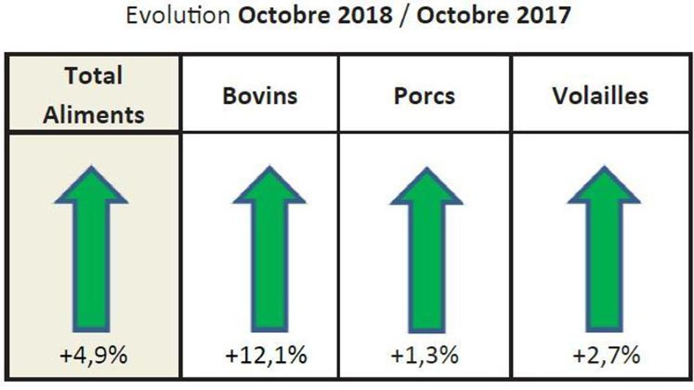 Sur la même période, les fabrications d’aliments pour porcs restent stables (+1,3 %) grâce aux aliments pour porcs à l’engrais (+1,0 %) et aux aliments pour truies (+2,2 %).