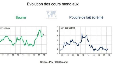 Dans les deux principaux bassins exportateurs mondiaux, la collecte évolue en sens inverse. « En l’espace de dix mois, la production laitière s’est accrue d’un peu moins de 3 % en Europe », constate Benoît Rouyer. À l’inverse, la collecte néo-zélandaise marque le pas entre décembre 2017 et février 2018, affichant un recul de 3 %.
