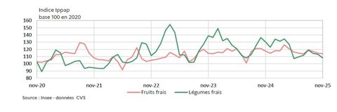 En novembre 2025, les prix des bovins sont ainsi supérieurs de 37 % à leur moyenne quinquennale, et les prix des œufs de 51 %.