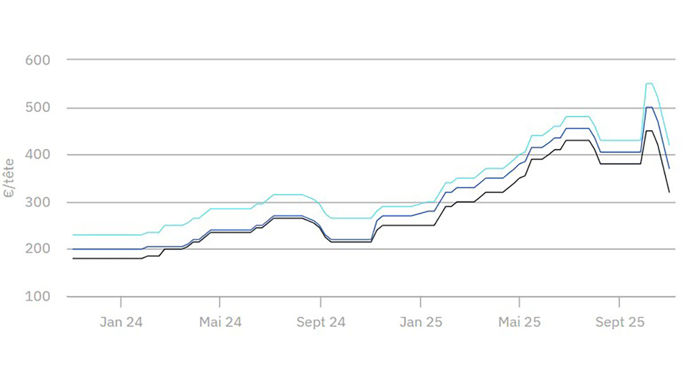 38 à 44 kg, U, 29/10/2025, €/kg vif 4,20 +0,1