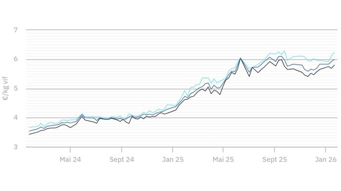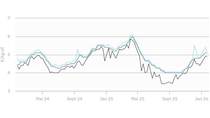 R, Charolaises, 19/01/2026, €/kg net 7,45 +0,05