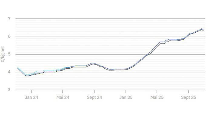 P, Laitier, 27/10/2025, €/kg net 6,28 -0,07
