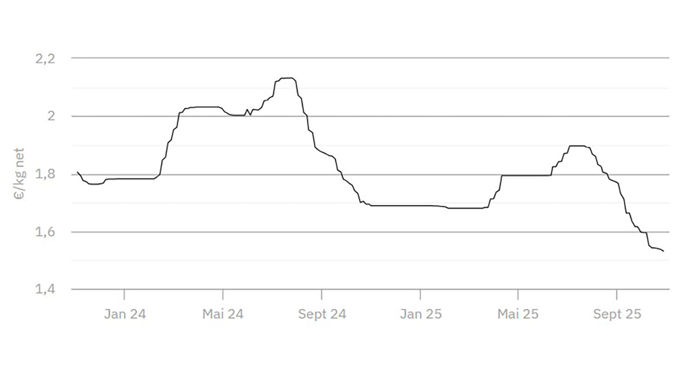 Base 56 tmp, 30/10/2025, €/kg net 1,52 -0,01