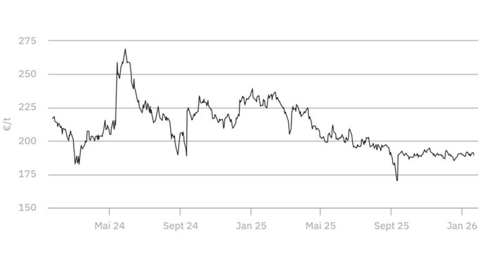 standard, A (acheteur), 2025, janv. à mars, 20/01/2026, €/t 185,00 -2