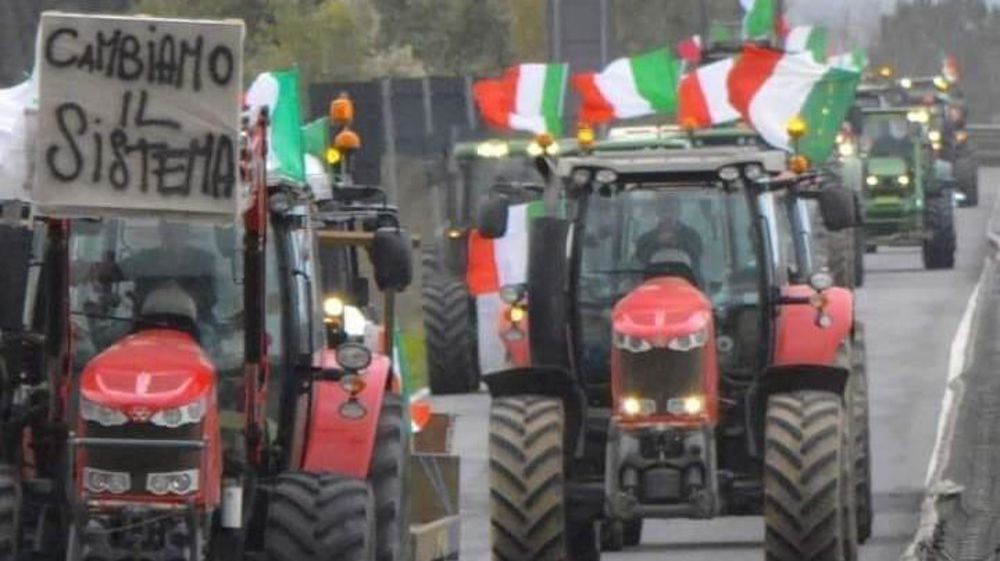 Sur le sol italien, un convoi de tracteurs approche de la capitale