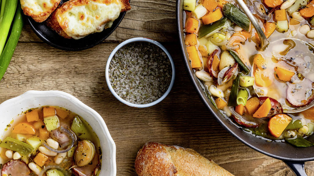 5. Servez dans des bols et assaisonnez de fleur de sel aux herbes de Provence.