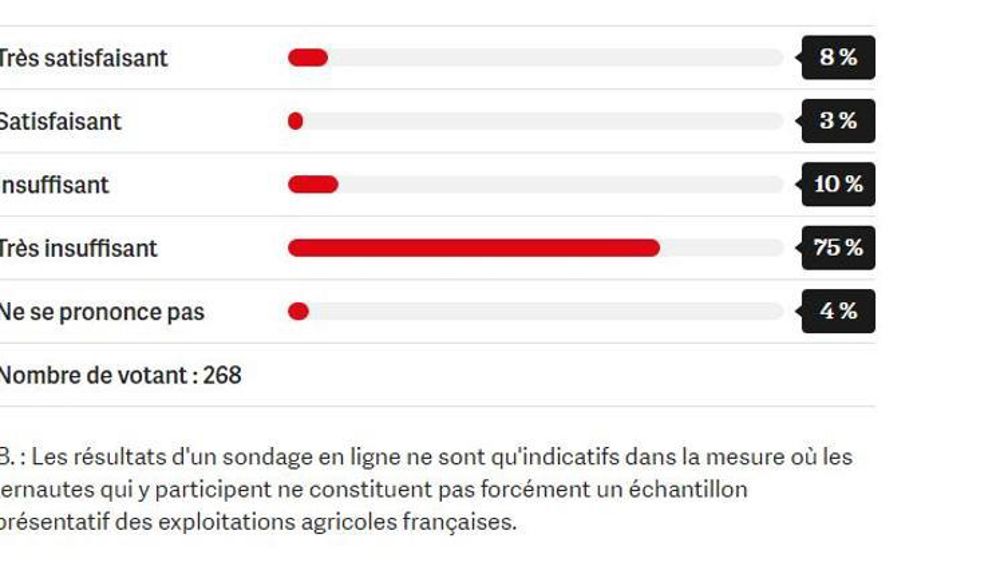 N.B. : Les résultats d’un sondage en ligne ne sont qu’indicatifs dans la mesure où les internautes qui y participent ne constituent pas forcément un échantillon représentatif des exploitations agricoles françaises.