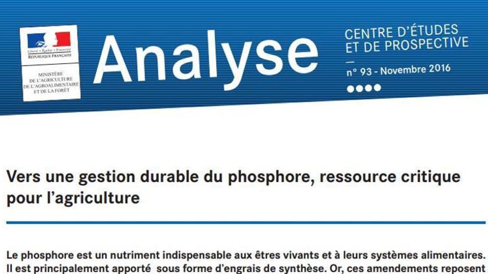 Dans ce contexte, le document précise enfin que les experts de l’European Sustainable Phosphorus Platform, créé en 2013, appellent à une gouvernance mondiale, indispensable pour assurer la disponibilité et l’accès à long terme à cet élément. Elle viserait à informer et sensibiliser l’ensemble des acteurs, dont les citoyens, mais aussi à établir des normes et lignes directrices partagées pour assurer une gestion durable du P.