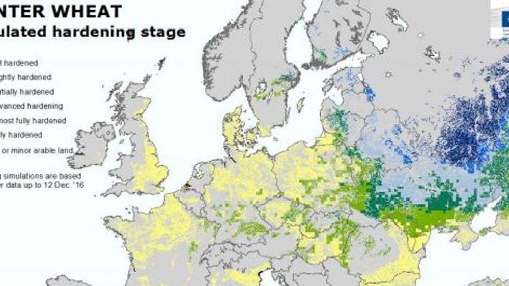 Le bulletin mensuel de l’état des cultures de la Commission européenne publié le 19 décembre 2016 annonce un retard du processus d’endurcissement dans certaines régions productrices de céréales d’hiver. Ce processus physiologique, qui correspond à la transformation du fructose cellulaire en glucose, augmente la tolérance des plantes aux basses températures et diminue ainsi le risque de gel.