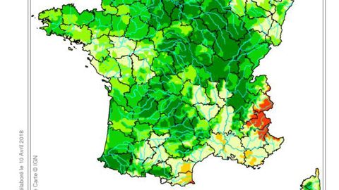 Toujours dans son bilan publié le 13 avril 2018, Météo-France situe l’indicateur « sécheresse » proche de la normale sur le Maine-et-Loire, près des frontières du Nord-Est, sur l’ouest de l’Occitanie, le pourtour méditerranéen, le littoral corse et l’est du Massif central.