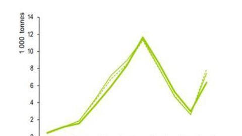 Sur la période de janvier à mai 2021, les importations (46 600 tonnes) s’élèvent de 22 % sur un an (essentiellement sur avril et mai), à l’instar des exportations (8 100 tonnes) qui progressent dans une moindre mesure, de 7 % sur un an. Le déficit des échanges (- 38 500 tonnes) se creuse tout de même de 25 % en cumulé janvier-mai par rapport à 2020.