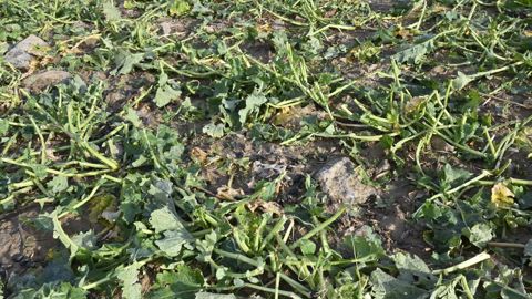Après le pâturage, les colzas ont perdu en moyenne 50 % de leur biomasse. © Laurent Jung