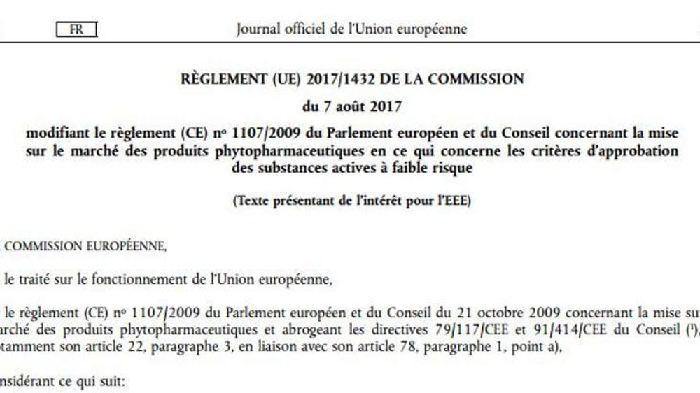 Cette modification du règlement européen sera applicable à partir du 28 août 2017. Pour l’instant, seules 11 substances sont officiellement considérées comme étant à faible risque, et il s’agit uniquement de substances composant des produits de biocontrôles ou homologués en agriculture biologique.