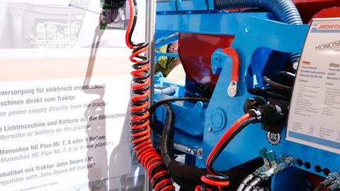 Monosem, à l’aide de son actionnaire John Deere, a même développé un kit d’alimentation électrique direct entre le semoir et le tracteur lui permettant d’alimenter des semoirs jusqu’à 9 rangs sans avoir besoin d’un alternateur supplémentaire sur l’outil. Cette solution se limite pour l’instant aux tracteurs de la marque John Deere disposant d’un alternateur 240 Ampères.