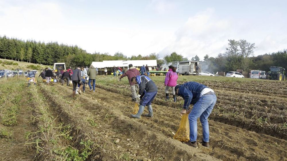 Depuis cinq ans, ce collectif organise une récolte destinée aux consommateurs. Pour parvenir à la parcelle, ceux-ci doivent suivre le fléchage depuis la sortie d’autoroute, puis emprunter une piste dans la forêt avant d’arriver au parking, installé dans une prairie. Ils ont le choix entre deux variétés, Monalisa et Agria, et ramassent la quantité qu’ils souhaitent. « Les petites, ce sont les meilleures ! », leur lance avec humour un des producteurs afin de les inciter à ne pas prendre que les grosses. Il leur reste ensuite à les transvaser dans des filets, les faire peser et les payer au tarif de 1 €/kg.