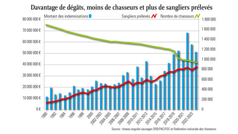 Si les prélèvements de la bête noire augmentent, le nombre de chasseurs diminue, ce qui fait porter la régulation et le financement du système d’indemnisation sur des contributeurs moins nombreux. Une situation qui met les chasseurs en alerte. Ils appellent le monde agricole à soutenir avec eux une réforme du système auprès de l’État.