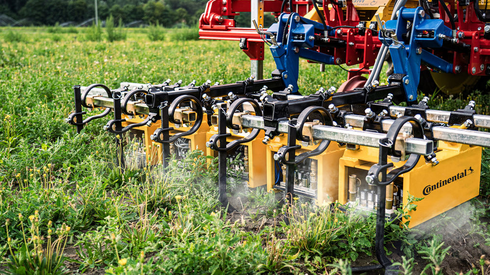 L’emploi d’un joint à rotules permet de s’assurer que l’eau est projetée dans la bonne direction, avec une grande précision. La durée de la projection et la quantité d’eau dépendent de la taille et de l’épaisseur de l’adventice détectée par les caméras. Selon Continental, plusieurs constructeurs sont intéressés par cette solution.