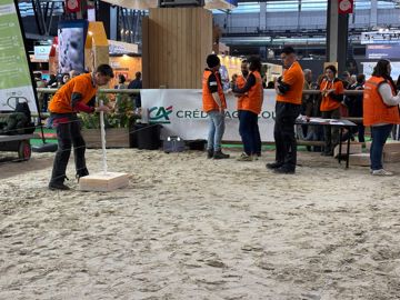 Les organisateurs ont innové cette année en mettant en place une nouvelle épreuve : la pose d’une clôture trois fils avec des piquets posés sur des blocs en polystyrène pour s’adapter au contexte du salon. « Nous sommes chronométrés », explique une jeune candidate en provenance de Bretagne. Les juges vérifient aussi la tension et le bon fonctionnement de l’installation.