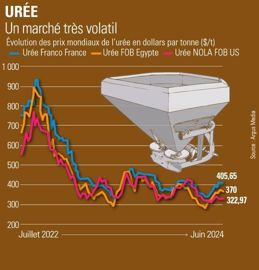 La France reste dépendante des importations d’urée, notamment en provenance d’Égypte. L’évolution des prix mondiaux de l’urée a une incidence forte sur le marché français. Les points bas atteints sur l’urée en avril et en mai 2024, couplés à la fermeté des prix des céréales à cette période, ont permis aux producteurs de se positionner sur les couvertures de la prochaine campagne.