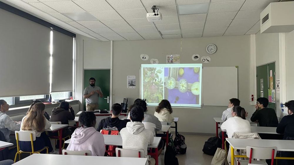 À la récréation, les lycéens peuvent déguster une pomme du verger de Gallerand. Puis en classe, ils rencontrent Camille Poisson et Sylvain Pellerin, venus expliquer leur métier d’arboriculteurs. Installés à Chilleurs-aux-Bois, ils produisent et vendent en direct des pommes et de la rhubarbe. « La plupart des élèves ne connaissent pas grand-chose à l’agriculture, mais on sent qu’ils sont intéressés. À nous d’expliquer notre métier », souligne Sylvain.