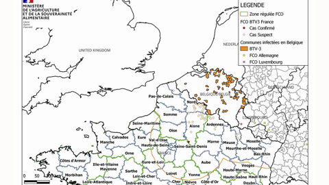 Selon le bilan arrêté au 8 août 2024, la France compte maintenant 3 foyers de FCO-BTV3. En conséquence, la zone régulée (ZR) dans un périmètre de 150 kilomètres autour des foyers a été agrandie. La liste des communes incluses dans cette zone est accessible sur le site internet du ministère de l’Agriculture.