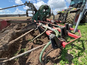 L’outil conçu est capable d’enfouir le produit de 8 à 25 cm de profondeur sur une largeur de travail de 8 m. « Nous avons monté des pointes fines car le but n’est pas de remuer la terre. Je laisse la technique de travail du sol à l’agriculteur. Pour la dose, la seule limite est légale » sourit Thibaud. La plupart du temps, le chantier apporte entre 40 et 60 m3 par hectare, avec un débit de chantier, lorsque le système est raccordé directement à un réseau, pouvant atteindre 100 m3/heure. Thibaud précise également, « qu’en étant indépendant d’une cuve et de sa capacité, on applique la dose souhaitée sur la totalité de la surface, sans se préoccuper des allers-retours. »