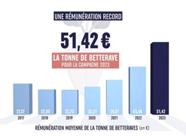 Il annonce une rémunération à « un plus haut historique », à 51,42 € la tonne de betteraves en moyenne pour la campagne de 2023 contre 43,40 € pour la campagne de 2022. « Après une campagne de 2023-2024 compliquée, voire éprouvante, nous affichons une très belle performance qui permet à notre groupe de proposer un prix de betteraves record à nos coopérateurs qui vient récompenser leur fidélité. C’est la preuve de la force collective de notre coopérative », a indiqué Olivier de Bohan, le président de Cristal Union.