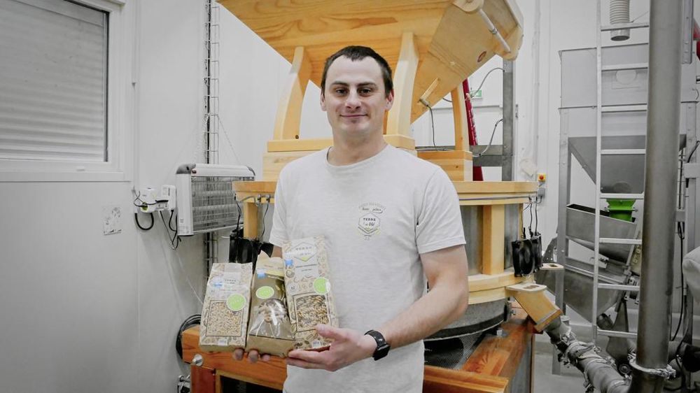 Samuel Jacquet cultive la terre de ses ancêtres : la ferme qu’il exploite à Beaumont-lès-Valence, dans la Drôme, a été achetée par sa famille juste après la Révolution française. Installé en 2016 en association avec son père, l’agriculteur de 31 ans a fait le choix d’arrêter la production arboricole, de continuer les grandes cultures et de diversifier l’exploitation en créant un atelier de transformation du blé dur en pâtes fermières. À l’époque, le marché des pâtes lui tendait les bras : seuls sept agriculteurs en produisaient en Drôme et Ardèche. Pour un investissement de 220 000 euros, il a fait construire un bâtiment de 100 m² et acheté toutes les machines nécessaires à la confection des pâtes dont un moulin, une tamiseuse, une machine à pâtes, un séchoir et une ensacheuse.