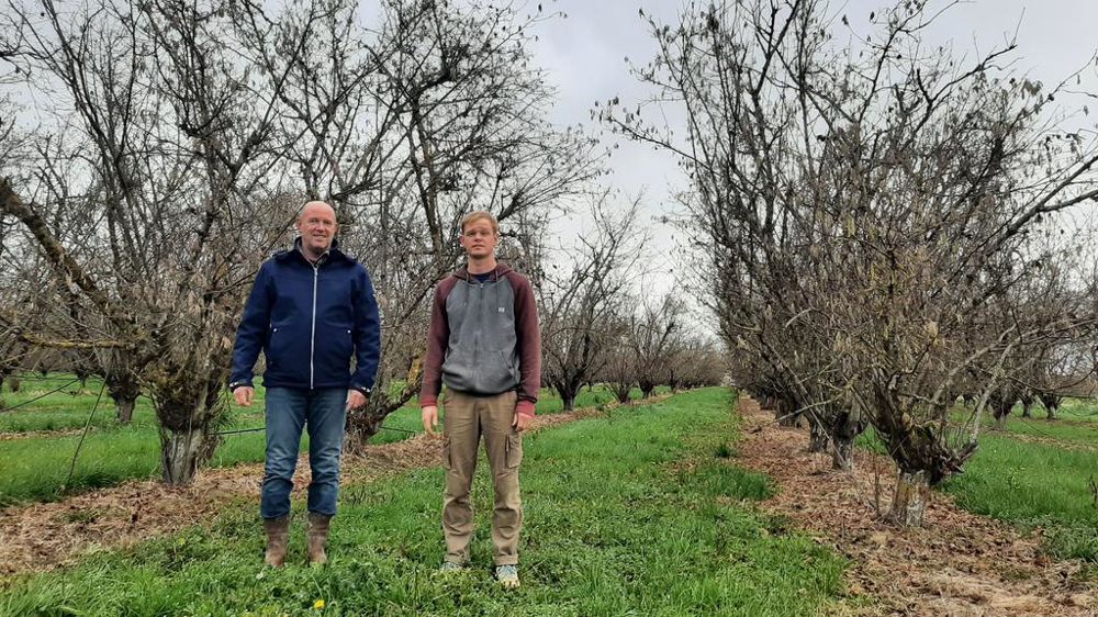 Depuis son installation sur l’exploitation familiale, en 2020, Thomas Carayon, 26 ans, n’a pas été chanceux : « En quatre ans, nous avons subi une grosse tempête, deux ans de gel tardif, un an de canicule et des dégâts importants sur les noisetiers dus à la punaise. » Avec des conséquences notables sur les rendements des 62 ha de noisetiers et/ou la qualité des fruits. Mais le Gersois, associé avec son père Marc sur la ferme de Castet-Arrouy, ne perd pas espoir.