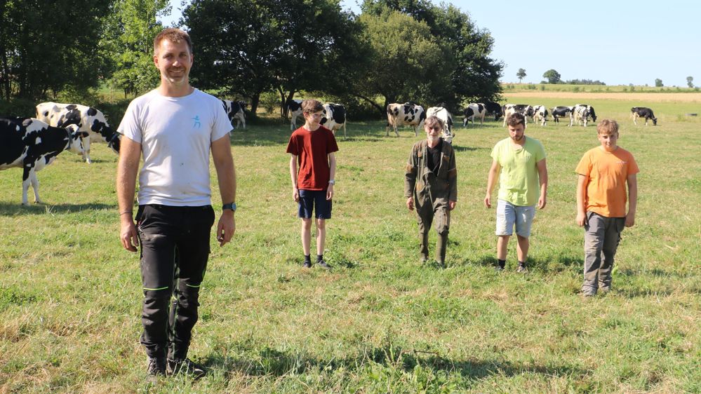 « Personne ne doit être indispensable dans l’entreprise. » Cette conviction, Romain Marqué l’a acquise au fil de dix années passées comme conseiller en clientèle dans une banque. Depuis son installation en avril 2018, il l’applique sur son élevage laitier pour limiter le risque opérationnel. Aujourd’hui, l’exploitation compte neuf trayeurs pour un total de 5,65 UTH.