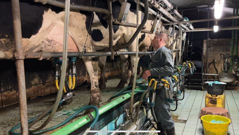 La traite des 120 vaches qu’il fait ce matin, « ça me permet de garder un lien avec l’exploitation. J’en ai besoin pour mon équilibre. Retourner un peu les pieds dans les bottes et dans la bouse », explique-t-il, quand des élus peuvent parfois « être déconnectés » de la vie professionnelle.