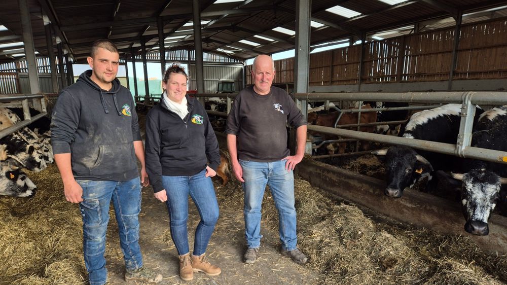 « Leur caractère laitier permet de produire du veau de lait. La fibre de leur viande est fine, avec du persillé. Leur gabarit convient bien. Une carcasse de 340 kg pour un bœuf ou de 280 kg pour une génisse s’écoule bien sur une semaine dans notre magasin et cinq autres points de vente », témoigne Raphaël Barowsky. BTS de machinisme en poche, il rejoint l’exploitation en 2013, un an après Florine, fille de Claude, titulaire d’un BTSA ACSE (1). « J’ai toujours été intéressée par la ferme et la vosgienne ! », souffle la jeune femme, aujourd’hui administratrice de l’organisme de sélection de la race. Une demande croissante pour des bœufs à l’herbe finis sur 28 à 34 mois, conduit à adjoindre, en 2022, au bâtiment d’origine en bois de 30 X 32 m, une extension en tôle de 36 X 24 m en grande partie autoconstruite. L’aire paillée des vaches est couverte en 2023, les abords aménagés à l’été 2025.