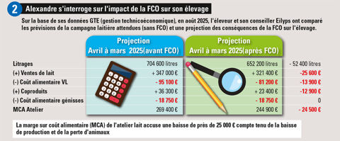 Pour mesurer l’impact de la FCO et des coups de chaleur, les éleveurs doivent comparer les projections de la marge sur coût alimentaire avec FCO à celles initialement prévues (sans FCO). « Le différentiel intègre la baisse de lait, la moindre dépense alimentaire liée aux pertes d’animaux, la réduction des ventes de coproduits (veaux, réformes) tout en déduisant le coût alimentaire des génisses », détaille Étienne Fraslin.