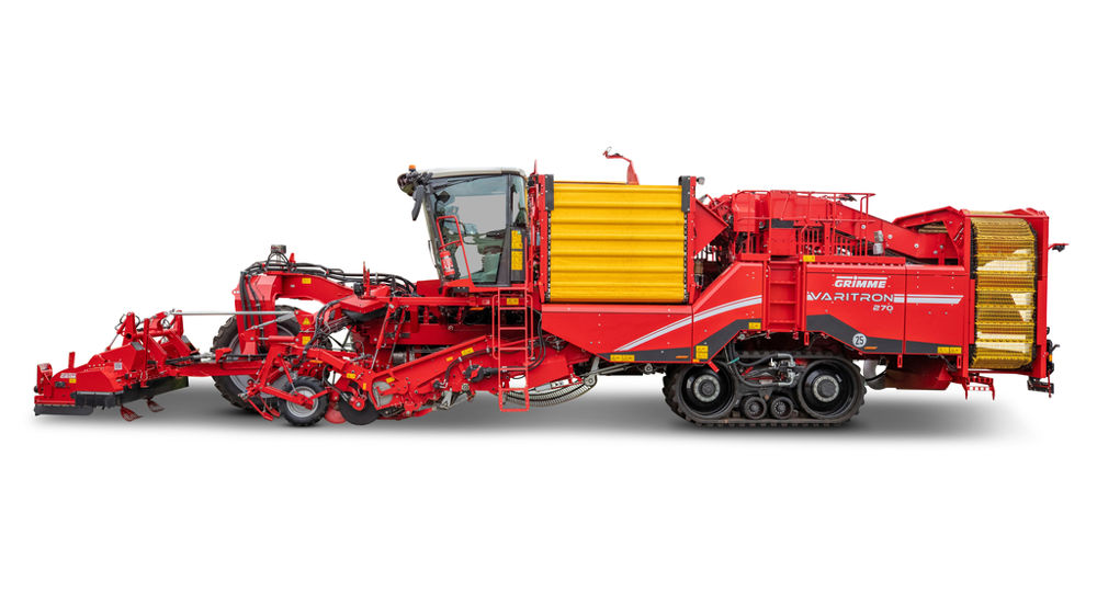 Afin d’augmenter la polyvalence de ces nouvelles Varitron, Grimme les équipe d’un dispositif de changement de composant du bâti d’arrachage. Grâce aux liaisons mécaniques standardisées, il est désormais possible de passer rapidement de l’arrachage de carotte au ramassage d’andains de pommes de terre. Il s’agit du même dispositif qui équipe déjà les versions 4 rangs.